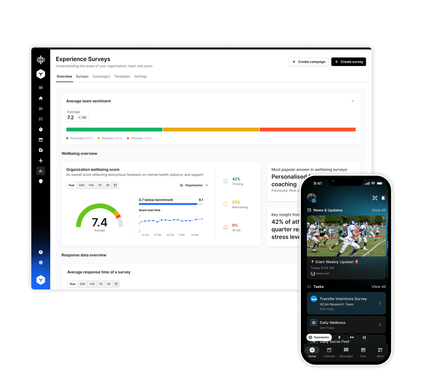 Designed to support the NCAA–Teamworks partnership, this survey distribution experience streamlines how student-athletes share feedback, offering a simple and trustworthy flow that fits naturally into their routines while enabling faster, more effective data collection.
