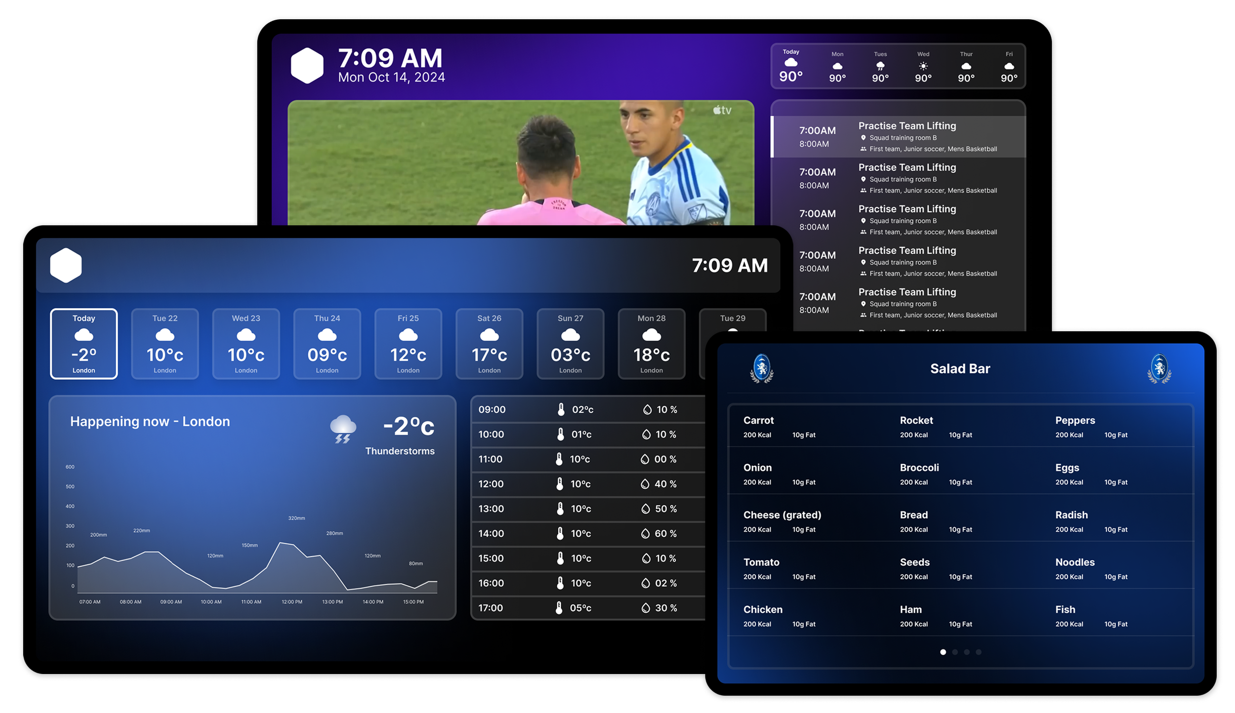 To keep players informed without relying on personal devices, a CMS was introduced that allowed staff to share schedules, events, and announcements on screens across the organization, streamlining communication for both athletes and staff.